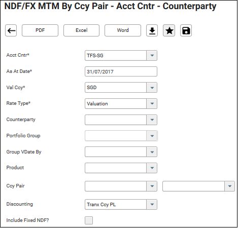 2. Fill in mandatory parameters – Acct Cntr, As At Date, Val Ccy, and Rate Type. The rest are optional parameters.