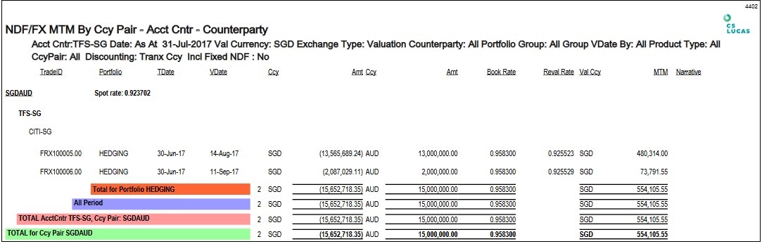 Report 4402: NDF/FX MTM By Ccy Pair – Acct Cntr – Counterparty