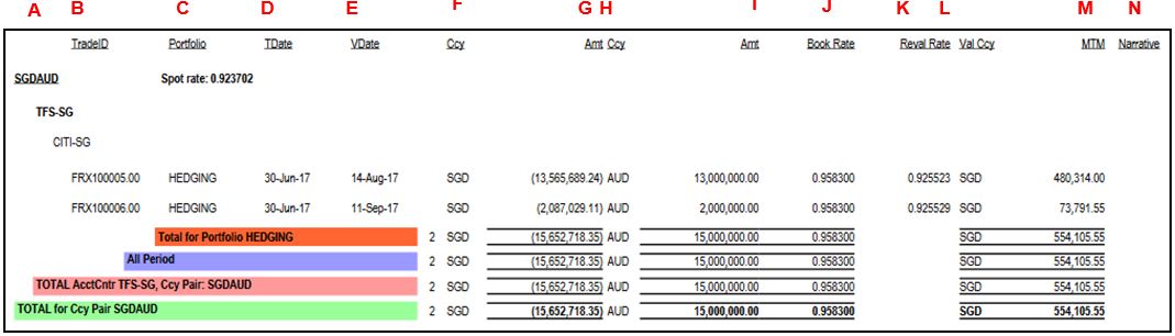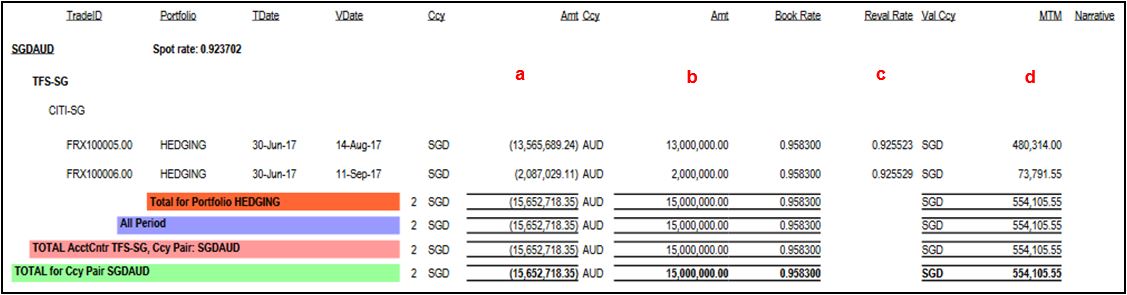 Example1, for the trade below, USD is greater than SGD alphabetically, the report will show as USDSGD.