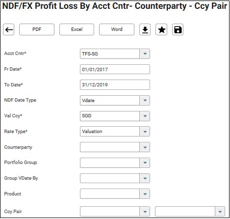 2. Fill in mandatory parameters – Acct Cntr, Fr Date, To Date, Val Ccy, and Rate Type. The rest are optional parameters.
