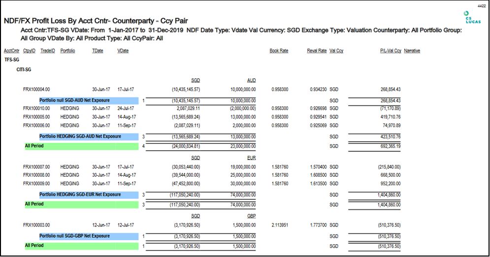 Report 4422: NDF/FX Profit Loss By Acct Cntr – Counterparty – Ccy Pair