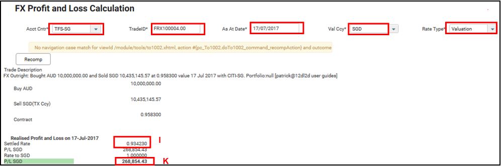 Fill in the mandatory fields as shown below will show you the results of Reval Rate and P/L-Val Ccy.