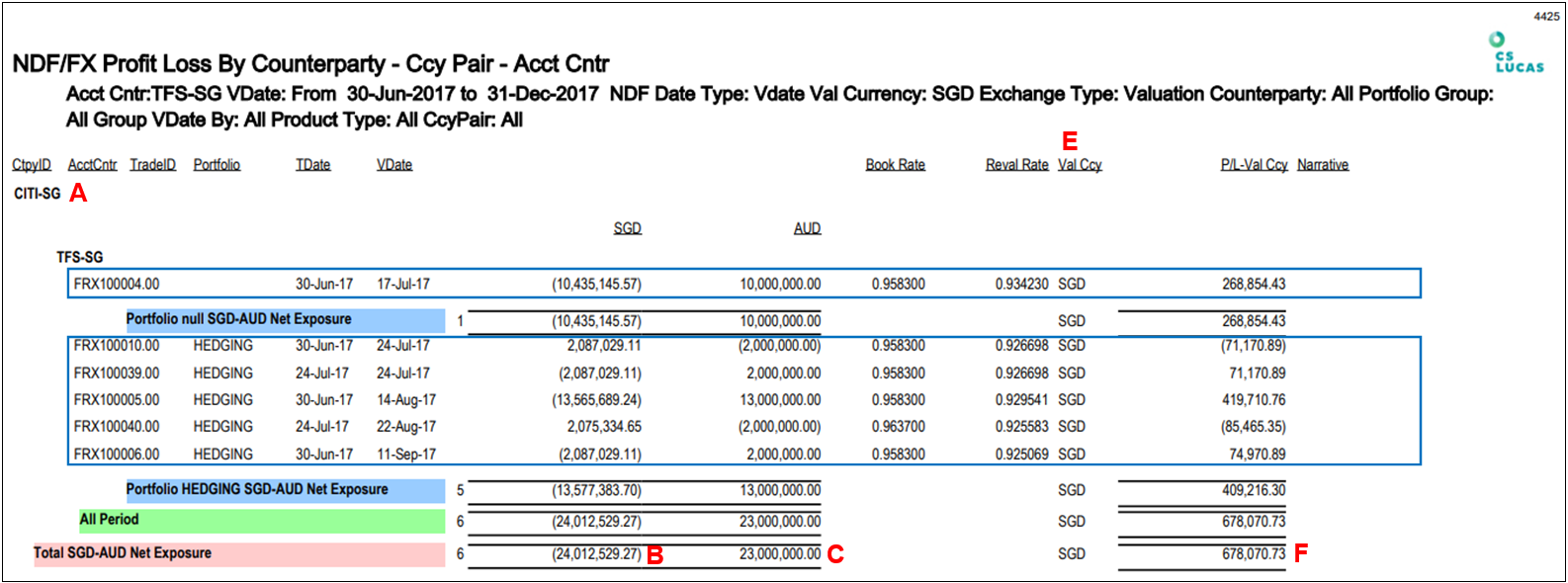To provide the details used by CS Lucas to show the Summary NDF/FX Profit Loss By Counterparty – Ccy Pair – Acct Cntr Classification.