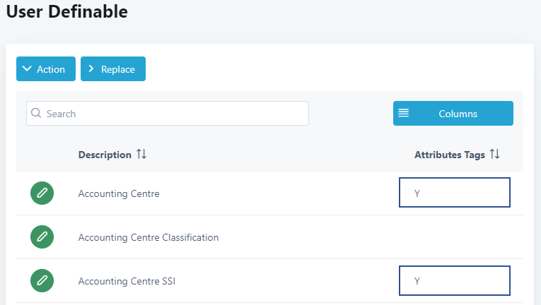 2. Look in the list with Attribute Tags = “Y” to create and primary and secondary attribute tags.