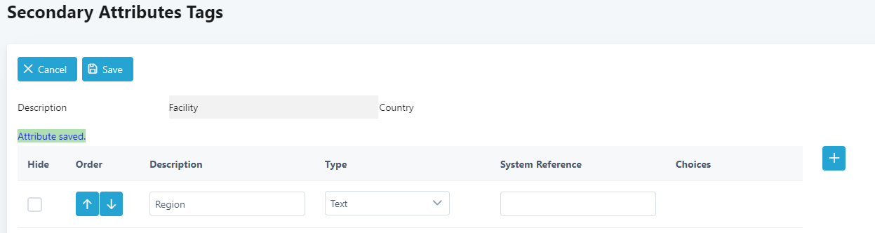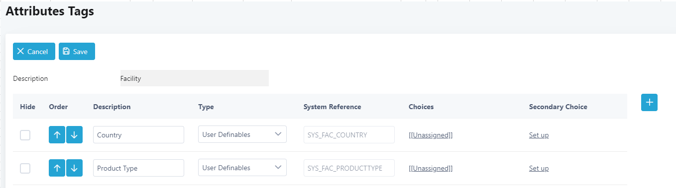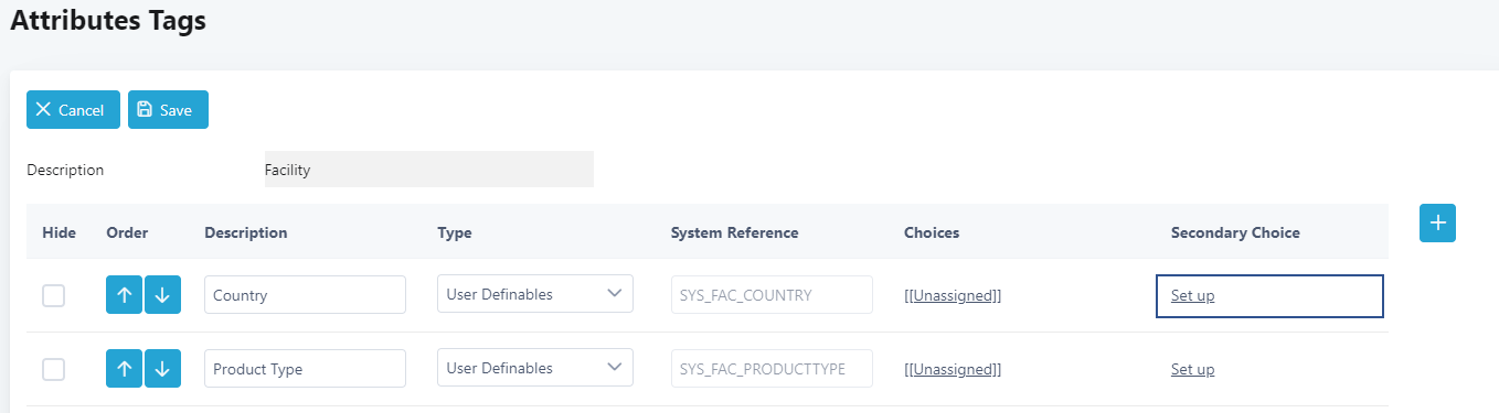 5. Click on the Set up hyperlink in the Secondary Choice column to create secondary attribute tags.