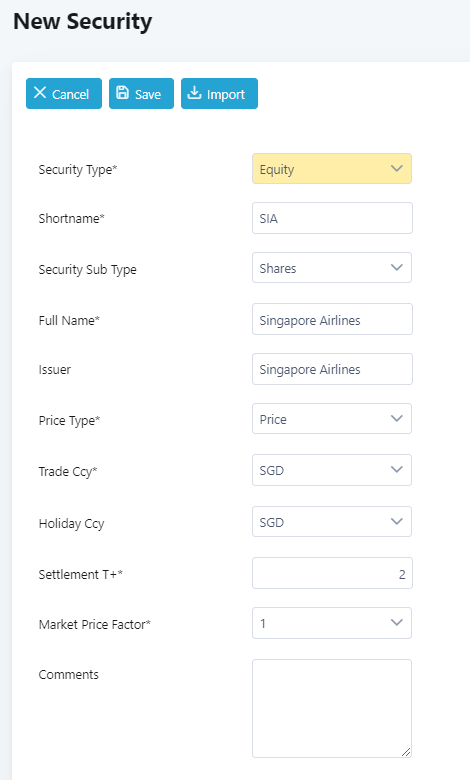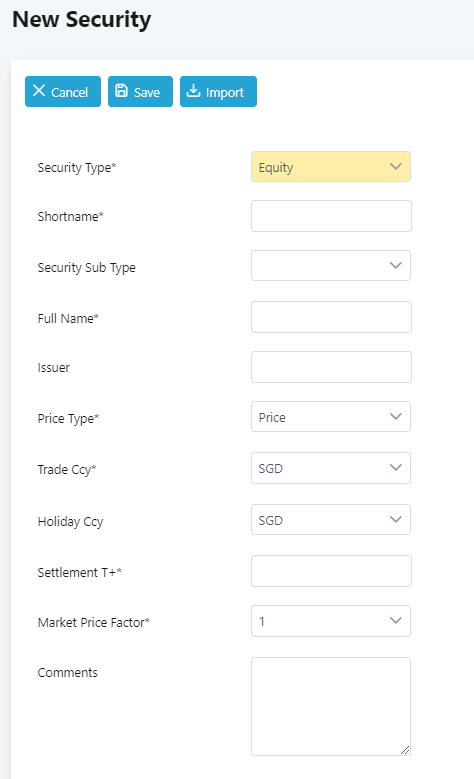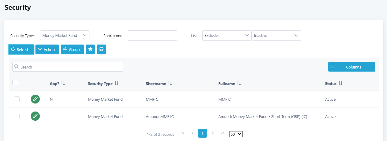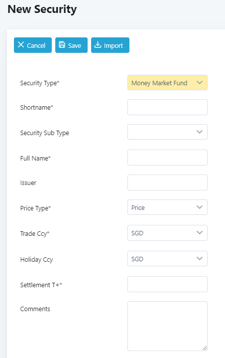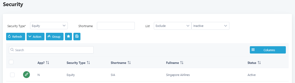 Note: The newly created security may needs to be tagged with the appropriate risk profile for compliance purposes. See Compliance guide for instruction on these tagging.