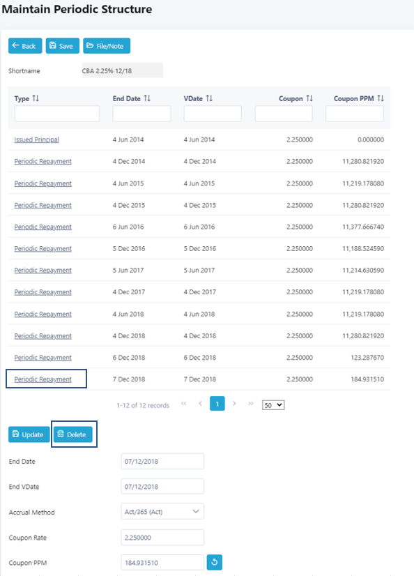 Then, click on the last periodic repayment line item, 7 Dec 2018 to delete.