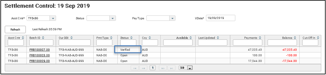 Settlement Control screen lines up all request for payments on a particular VDate.