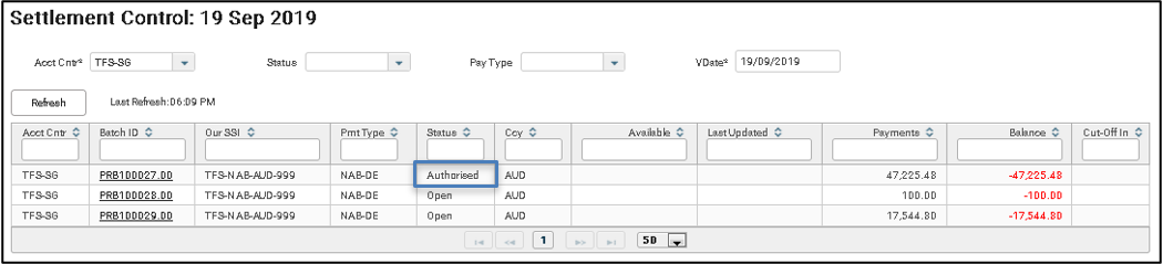4. All payment requests submitted to Settlement Control screen for payments will be in Open status.