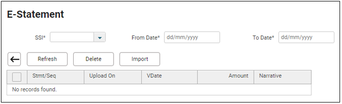 9. To view the bank statement activities loaded, select SSI, From Date and To Date, then click on Refresh button.