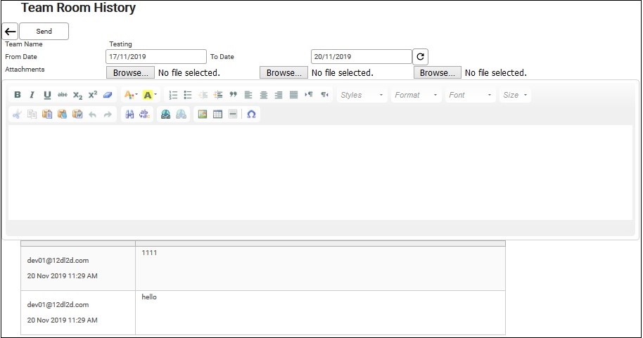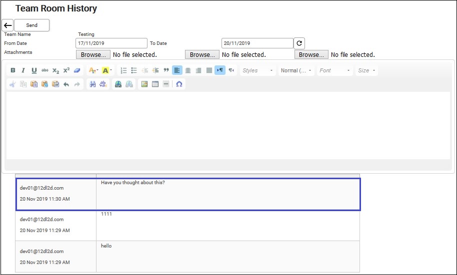 6. Messages sent within the Team Room will be displayed below.