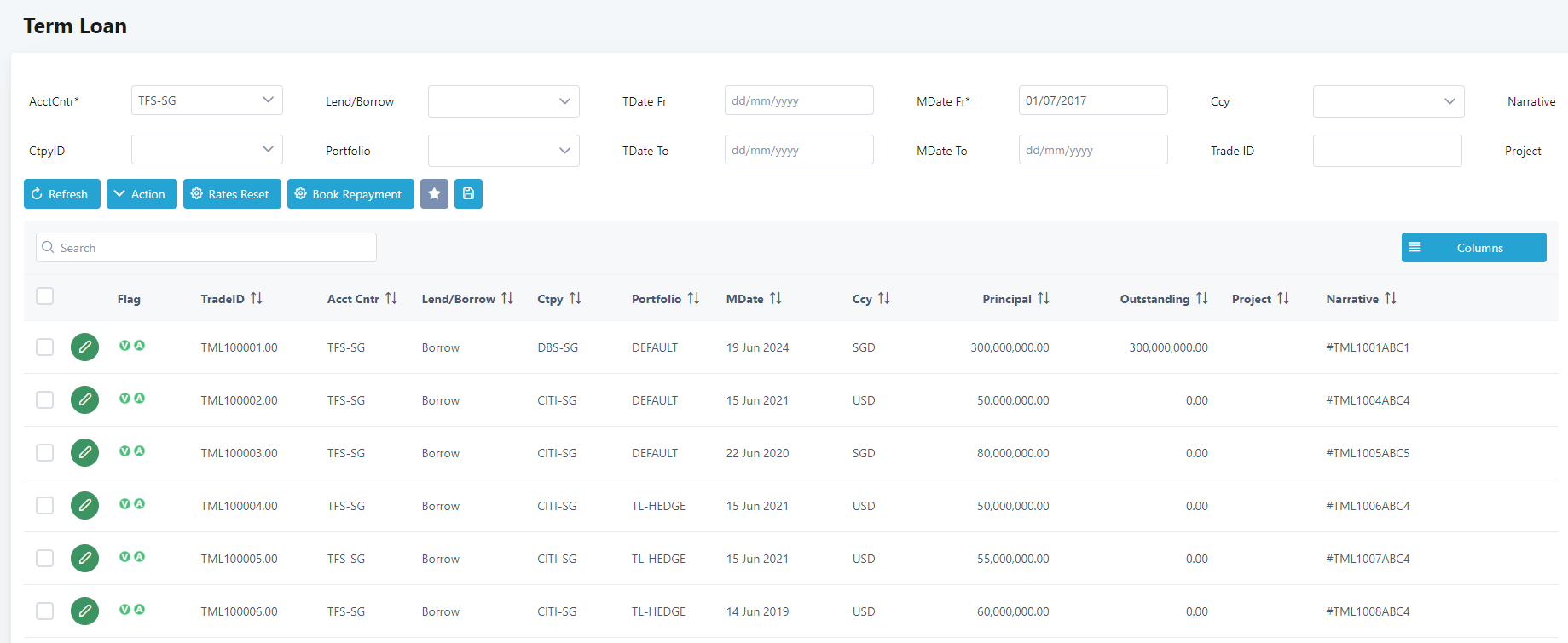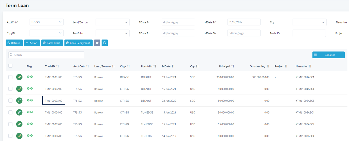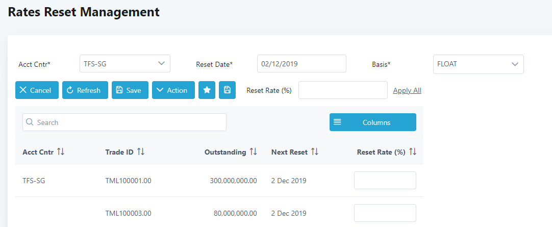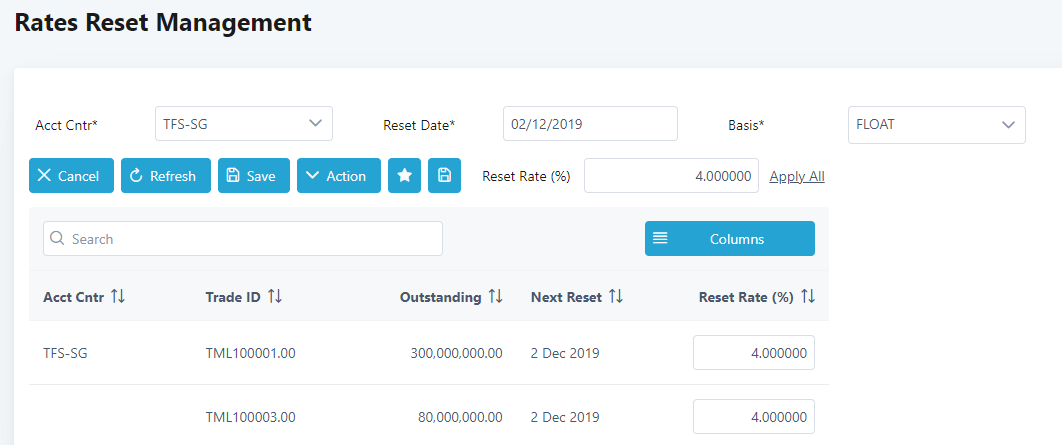 This would allow users to update reset rates for multiple term loan repayment items so that it can be done in one screen for all the repayment items that require the update.