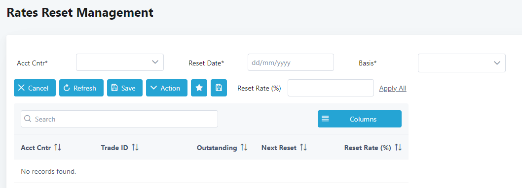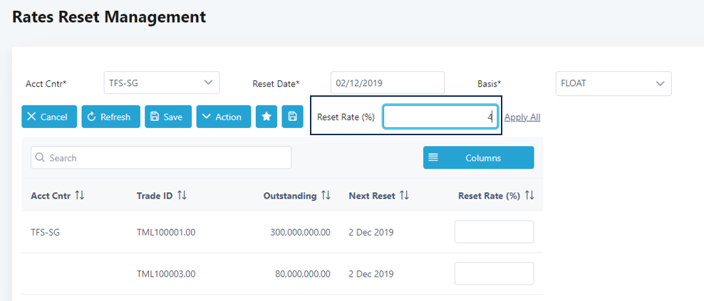 4. Type in the Reset Rate (%) and click on Apply All to apply the rate to all the periodic items listed.