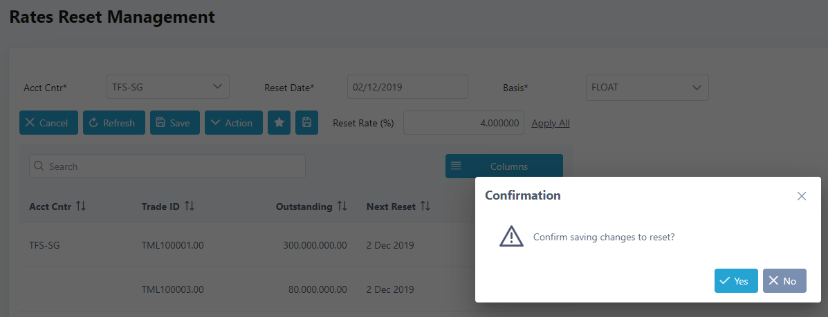 10. Click on Rates Reset button. The rate percent is now updated for this trade.
