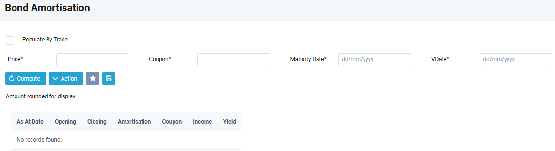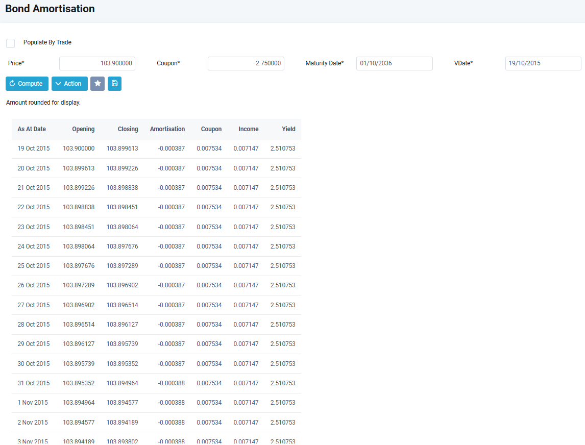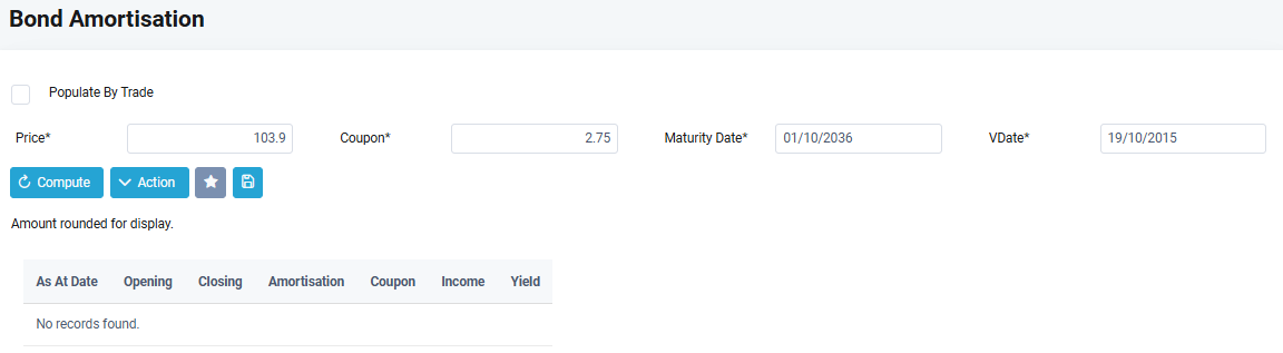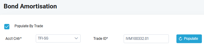 5. You can also choose to populate the bond amortisation schedule by trade ID. Tick on the checkbox for Populate By Trade.