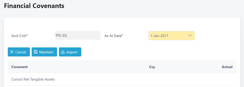 This document contains the detailed procedures on how to set up facility covenant and perform periodic checks for compliance.