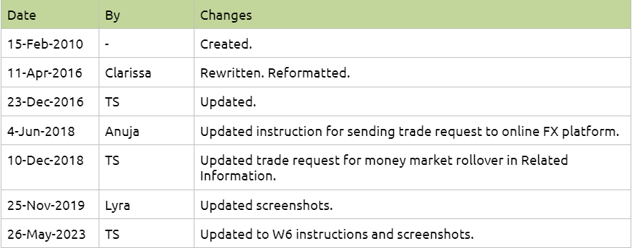 This document describes the procedure on how to create, amend, approve and process trade request for Money Market, Foreign Exchange and Contingent Liability – Issue Guarantee.