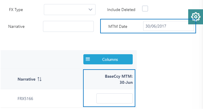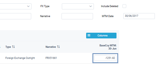 2. Change the MTM Date to the desired date. Usually this is the month end date. In this example, 30/06/2017 will be inputted so the MTM for the month of June can be recorded. Click Refresh.