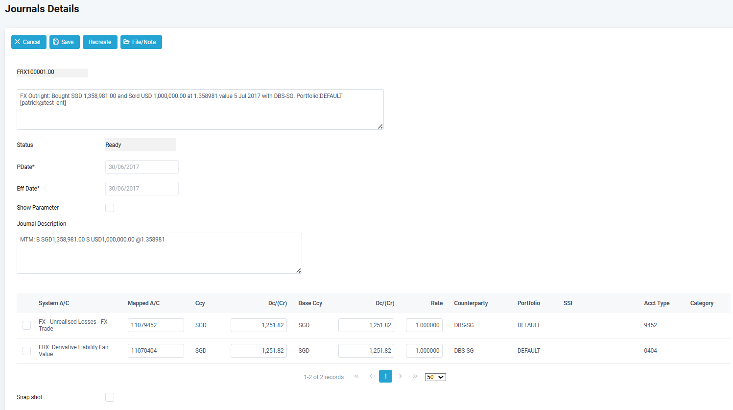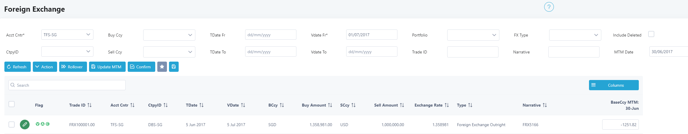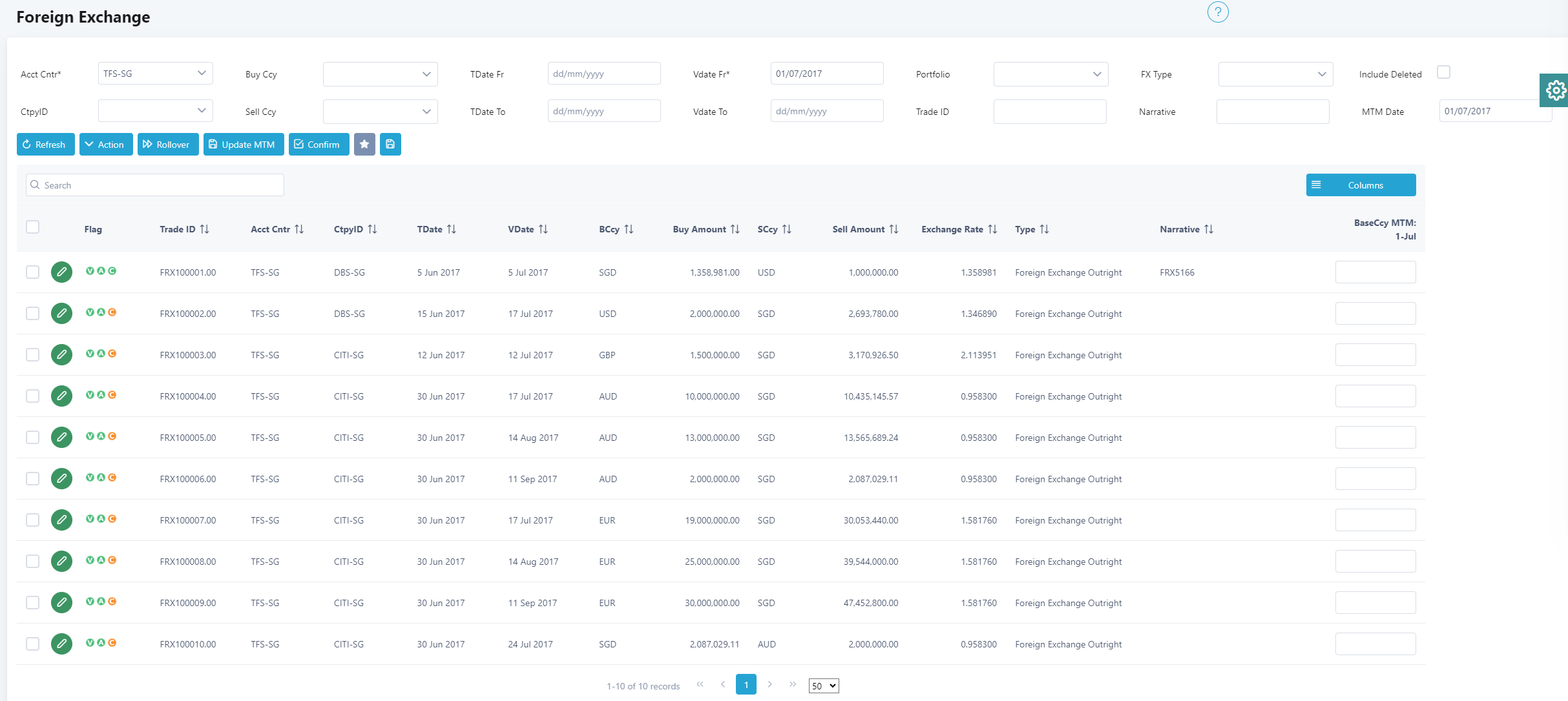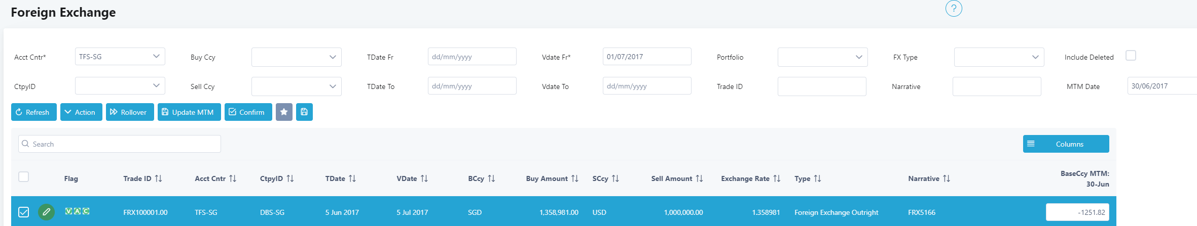 System computes MTM for foreign exchange trade automatically. However, there are cases where the MTM need to be based on what is provided by the bank due to audit requirements. This feature allows manual update of mark to market value so that accounting journals can be generated and posted to external ERP system.