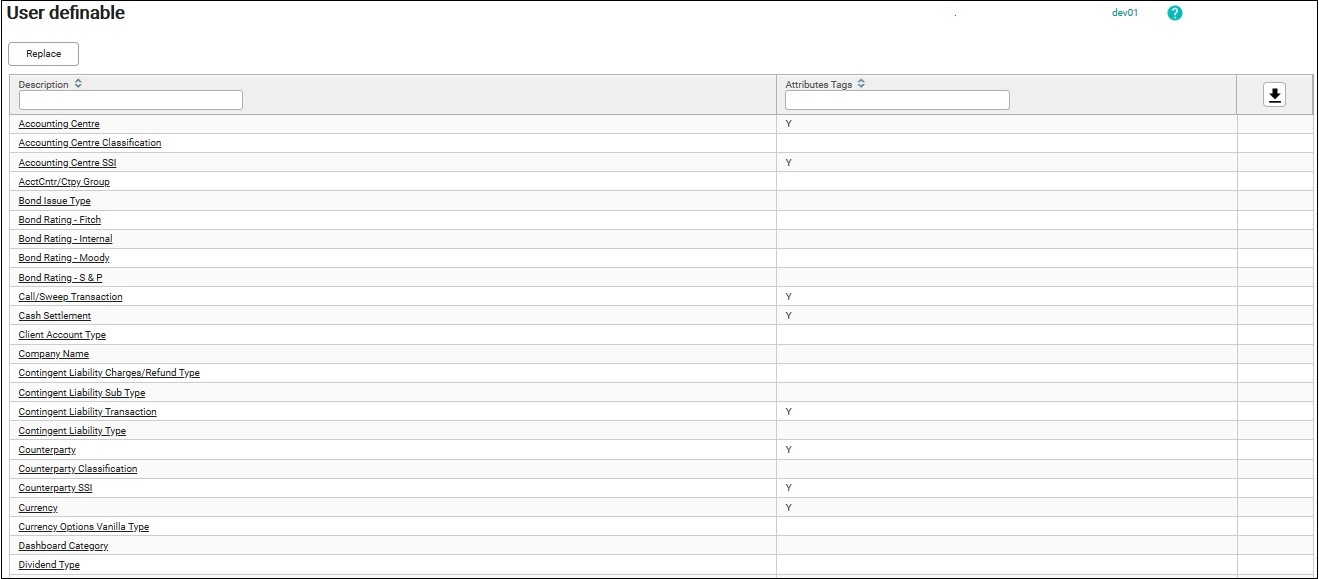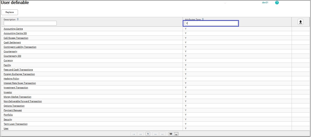 3. Put a “Y” in the Attribute Tags search box to search for transactions or static data that can create user attributes field.