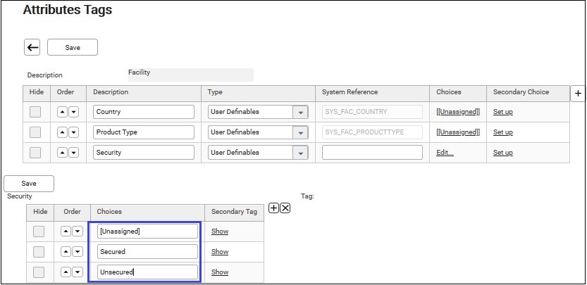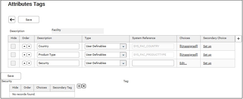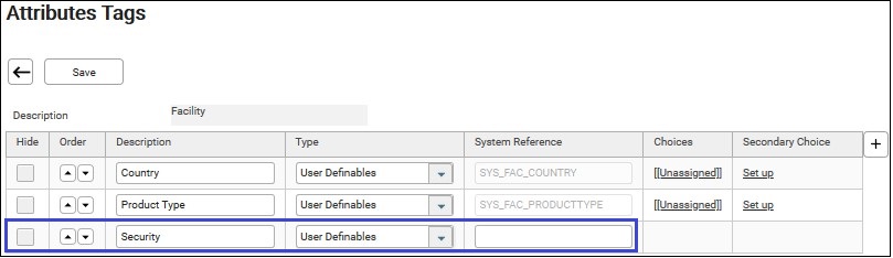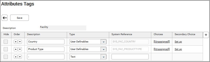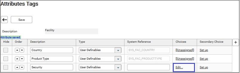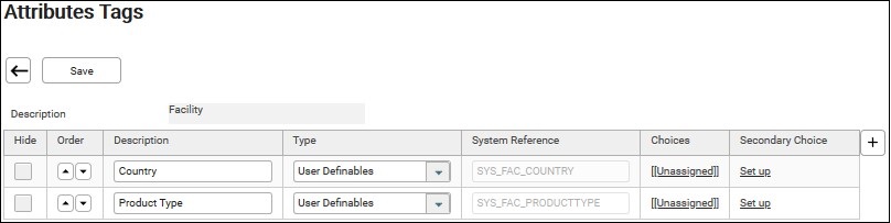 4. Click on the description. E.g. Facility. The “Attribute Tags” screen of Facility displays.