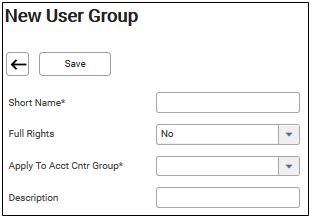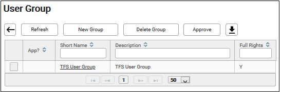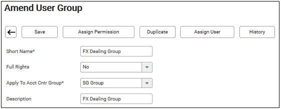 8. Next, assign permission to the User Group: click on the group’s short name and the Amend User Group will be displayed.