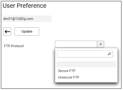 In User Preference screen, set up the required authentication details for FTP/SFTP User as below.