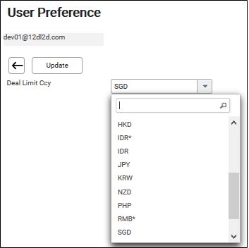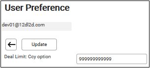 This is to set the user dealing limit currency for booking transaction. This is associated with the deal limit maintained in the User Preference screen.