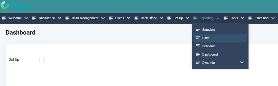 3. If you do not see any user report available in this screen, this is because no user report has been downloaded to the system yet. You can find and download the available user reports in CS Lucas Extension Store in the system by clicking on Extension from the main menu > Extension > Select Category as Report. For more details on how to download user reports from the Extension Store, see CS Lucas Extension Store.