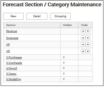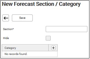 4. To create a new forecast section/category, click New. The screen below will be displayed.