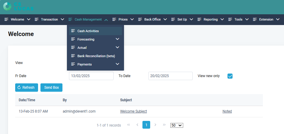 1. From the welcome screen, select Cash Management > Cash Activities.