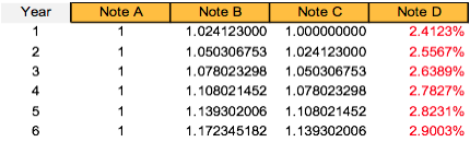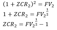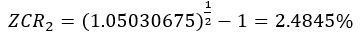 Based on a future value of 1.05030675 at the end of Yr 2, we can compute the expected yield on a two-year zero coupon yield (). This is expressed using the formulae