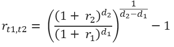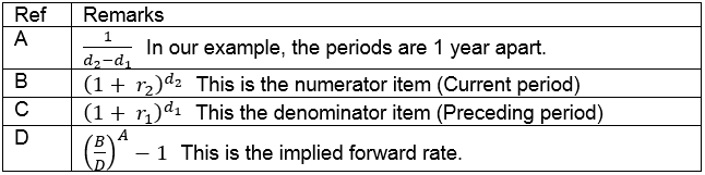 Based on the relationship in I above, we can derive the implied forward rate from a given Zero Coupon Bond using the following formula: