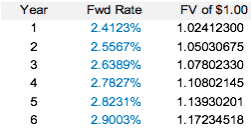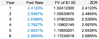 Note that the above implied forward rate derived from the above method is the same as those used to derive the Zero Coupon Curve from Section I above.